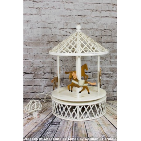 Manège Carrousel en Bois BLANC - Electrifié - Hauteur: 63cmx38cm - Location 20€TTC